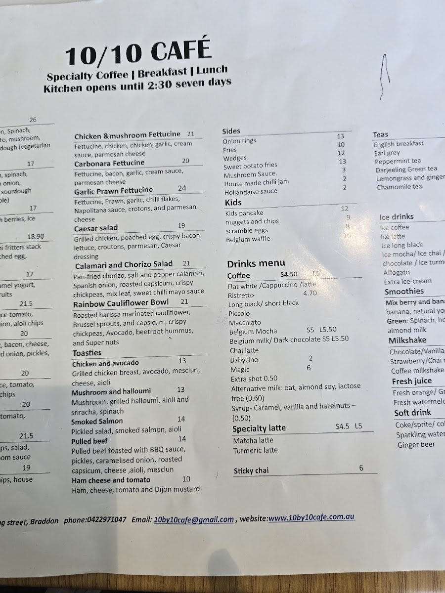 10/10 cafe Menu